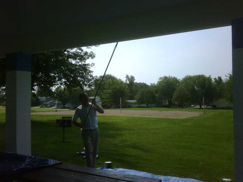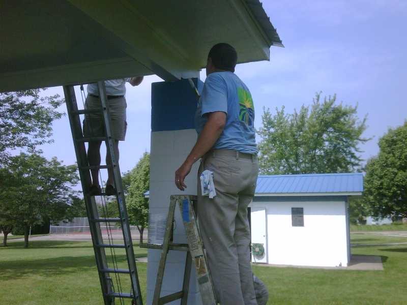 Members of the Bettendorf Kiwanis gave Kiwanis Park a face life this summer. On four different occasions, Bettendorf Kiwanians gave up their Saturday mornings to apply fresh paint to the inside and outside of both the bathrooms and the park shelter.